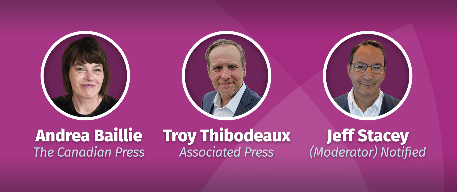 Our panel featured Andrea Baillie, Editor in Chief at The Canadian Press, Troy Thibodeaux, Director of Digital News at the Associated Press, and was moderated by Jeff Stacey, VP of Product Management at Notified.