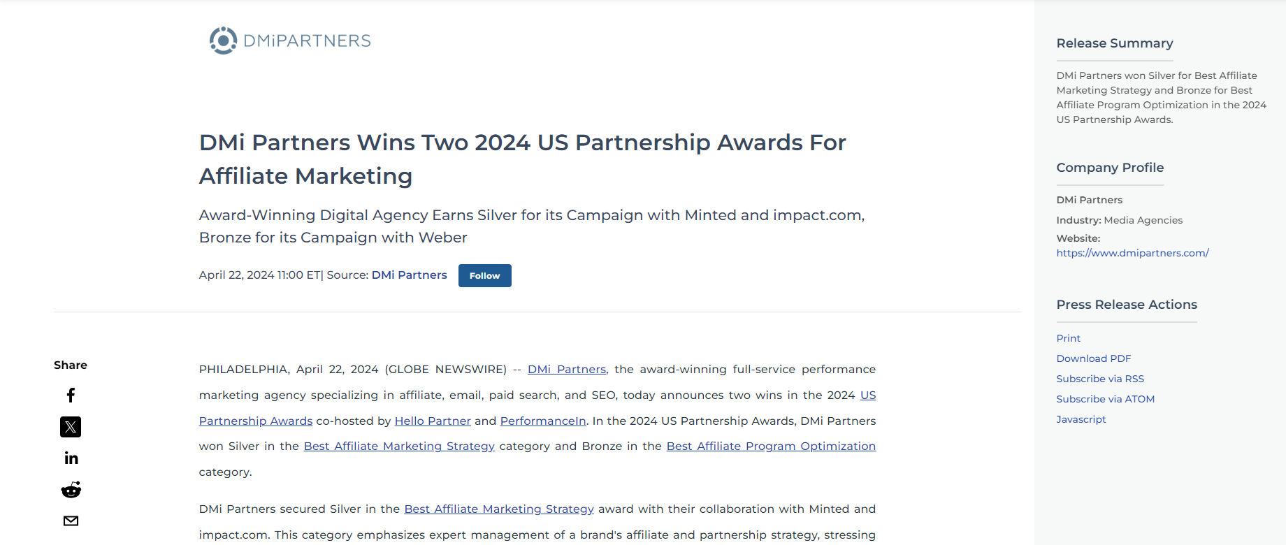 This press release effectively communicates DMi Partners' expertise, achievements and success with clients, making them stand out as a top affiliate marketing firm.