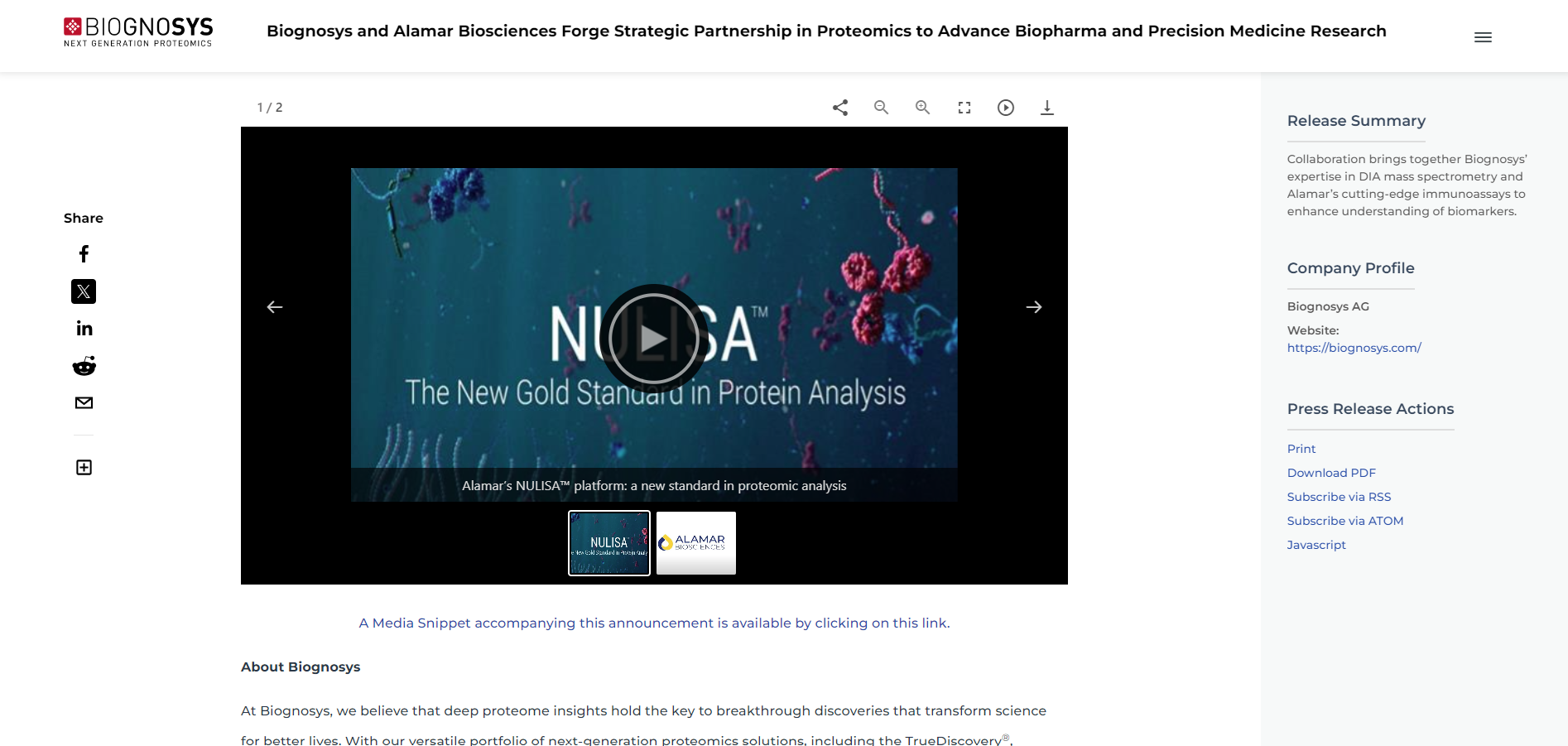 - Incorporates Video - Short videos provide a visual representation of the collaboration and its potential impact of its platform NULISA.